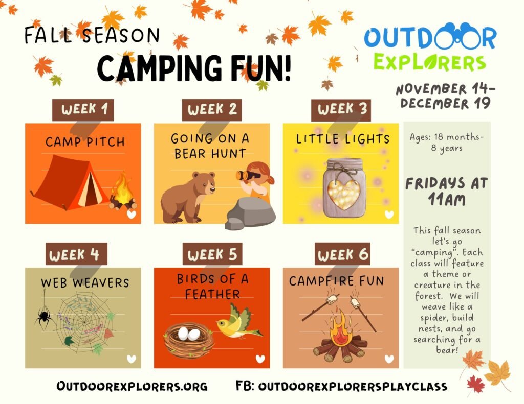 18 MONTHS TO 8 YEARS OLD ARE WELCOME TO JOIN THE FUN AND LEARN TOGETHER OUTDOORs